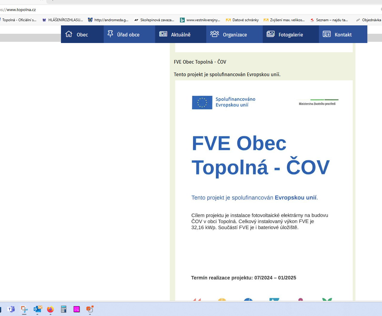 Cílem prokjektu je instalace fotovoltaické elektrárny na budovu ČOV v obci Topolná. Celkový instalovaný výkon FVE je 32,16kWp. Součástí je i bateriové uložiště.